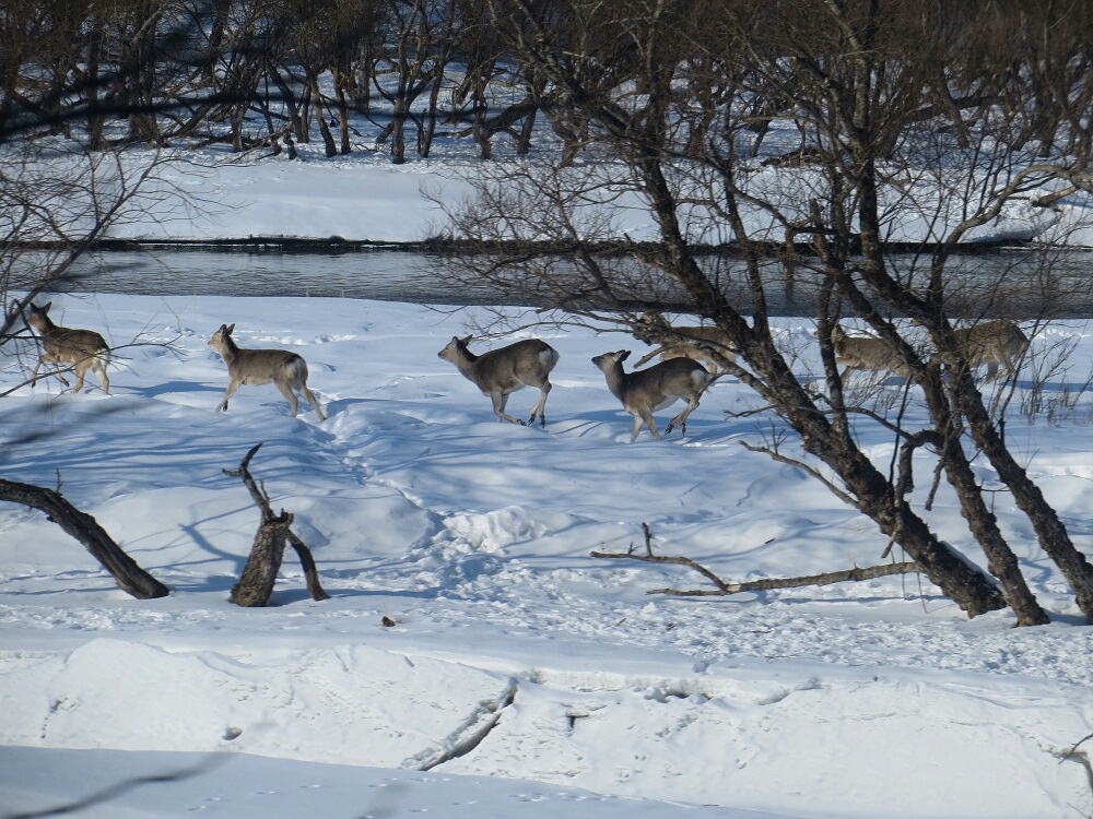 釧路湿原では鹿たちもSLを見ていたり群で走っていたり自然なんですね。