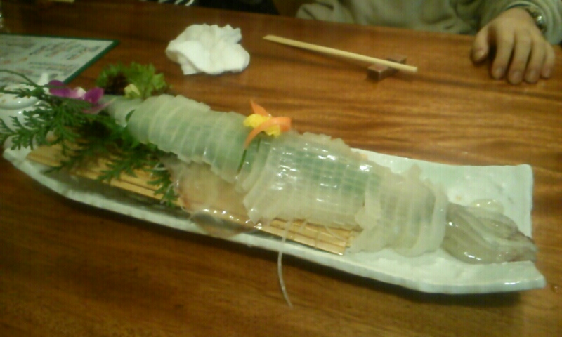 イカが生け簀に泳いでます。透明のイカは函館以来です。