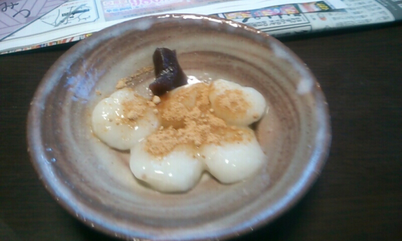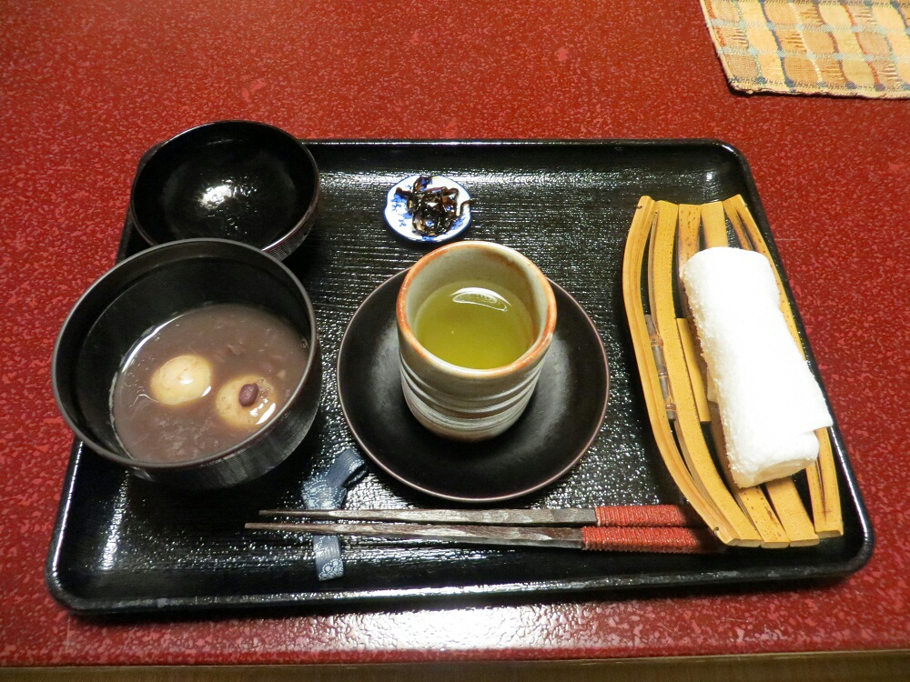 雨で冷えきった体には「おしるこ」が沁みます。うまい!