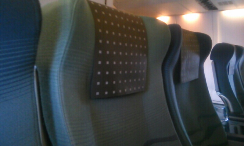 往復普通席です。クラスJに慣れてしまうと狭いですね。