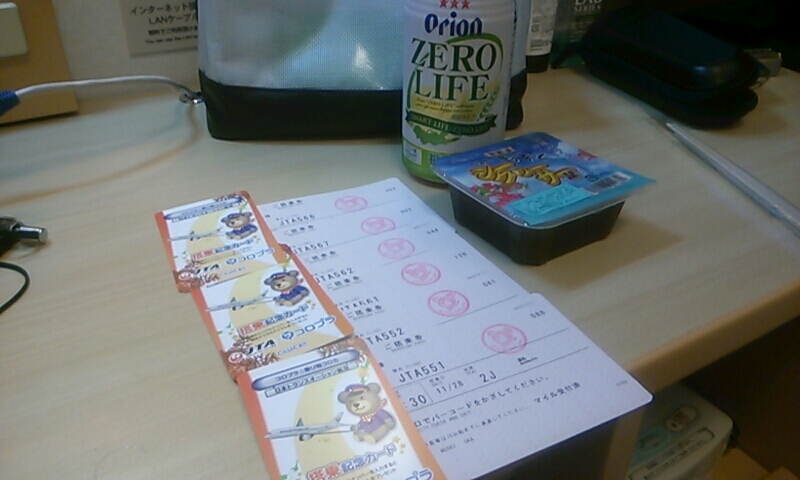いつものようにカウンターで本日分の搭乗券すべてを発券して頂きます。