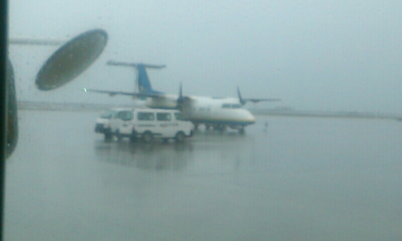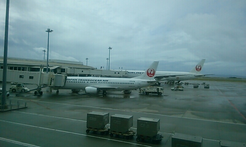 那覇空港でバードストライクがあり閉鎖との事。(飛行機と鳥が衝突する事)10分でオープン。