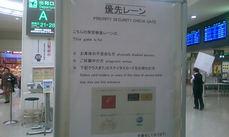 いよいよ、優先搭乗です。まずは、乳幼児、お体のご不自由なお客さまからです。